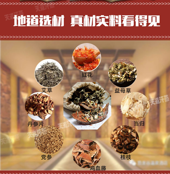 能量汗蒸房是由8種中草藥組成的中藥包,有紅花、艾草、當(dāng)歸、益母草、黨參、當(dāng)歸、雞血藤、桂枝等中藥組合而成的,地道選材,真材實材料看得見,通過汗蒸房設(shè)計施工,中藥包常用于汗蒸房的頂部,汗蒸房的墻面,組合而成為中藥汗蒸房,通過加熱和保溫,這些中藥味可以慢慢的釋放出來,人在里面汗蒸時可以被人體所吸收,起到除濕除寒,排毒養(yǎng)顏的作用,堅持汗蒸可以提高人體免疫力,改善身體亞健康狀態(tài).