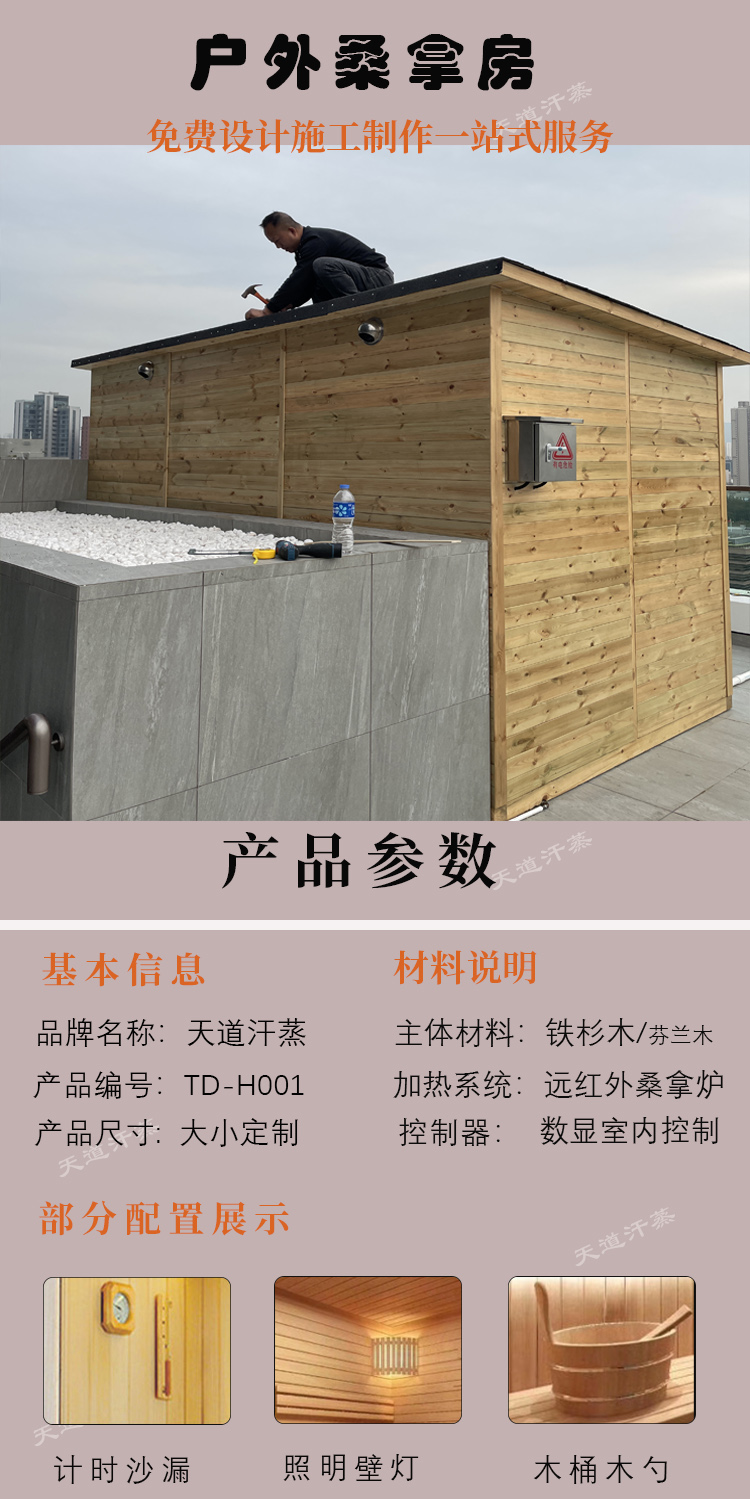 定期清潔與干燥。每次使用后及時清理內(nèi)部水漬、汗液,每年對主體木材涂抹一次戶外專用木蠟油,增強防水、抗腐能力;檢查不銹鋼五金件、玻璃膠條,若出現(xiàn)生銹、老化,及時更換,保證門窗開關(guān)順暢、密封性良好;加熱設(shè)備(如桑拿爐、發(fā)熱板)需每季度清潔一次表面灰塵,確保散熱正常。