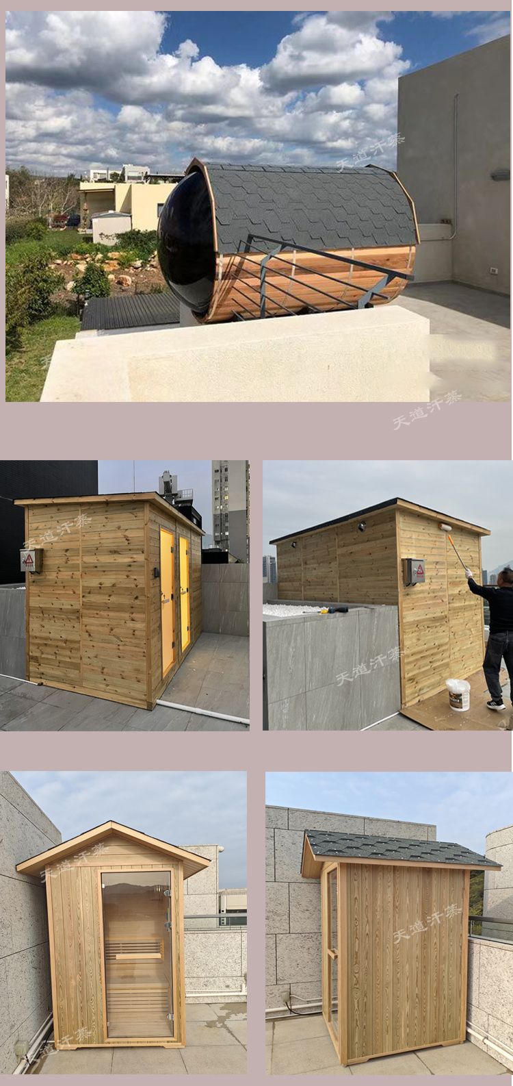 戶外桑拿房的應用場景:私人家庭、民宿 、度假村、高端露營、 營地、小型商業(yè)休閑場所等