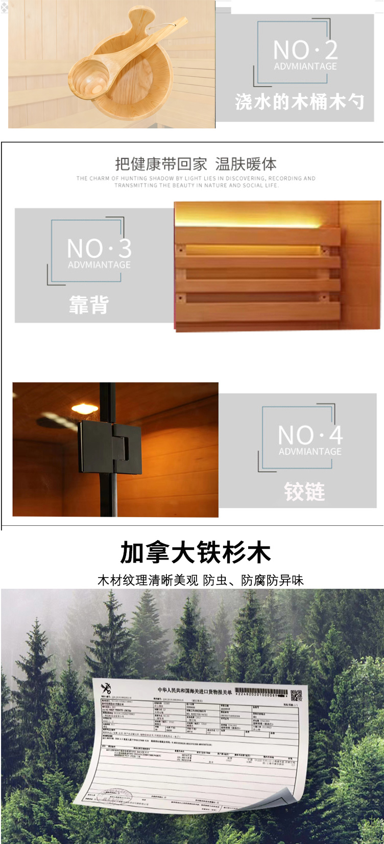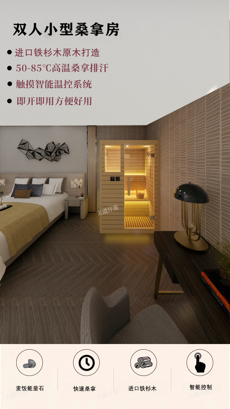 雙人桑拿房節(jié)省空間:相比安裝兩個(gè)獨(dú)立單人桑拿房,雙人款僅需占用一處空間,尤其適合家庭或小型商業(yè)場(chǎng)所。